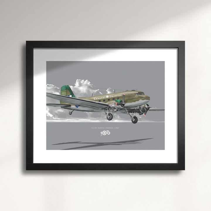 This limited edition fine art print featuring the CC-129 Dakota (DC-3) (circa 1943)—and our entire RCAF 100th Centennial Collection—is perfect for collectors and aviation enthusiasts of all ages. By purchasing this, you will also be supporting the RCAF and its personnel, as a portion of the proceeds will be donated to the RCAF Centennial Fund.