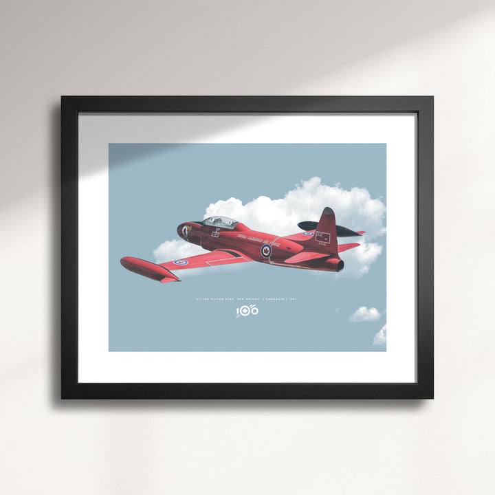 This limited edition fine art print featuring the CT-133 Silver Star 'Red Knight' (circa 1951)—and our entire RCAF 100th Centennial Collection—is perfect for collectors and aviation enthusiasts of all ages. By purchasing this, you will also be supporting the RCAF and its personnel, as a portion of the proceeds will be donated to the RCAF Centennial Fund.