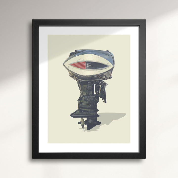This print is part of a series of stand-alone vintage outboard motor prints from the 1940s through the 1970s. If you prefer, you can also order a version featuring a full collection of motors. Either way, they make a great addition to any cottage, home decor, or the ultimate man cave.