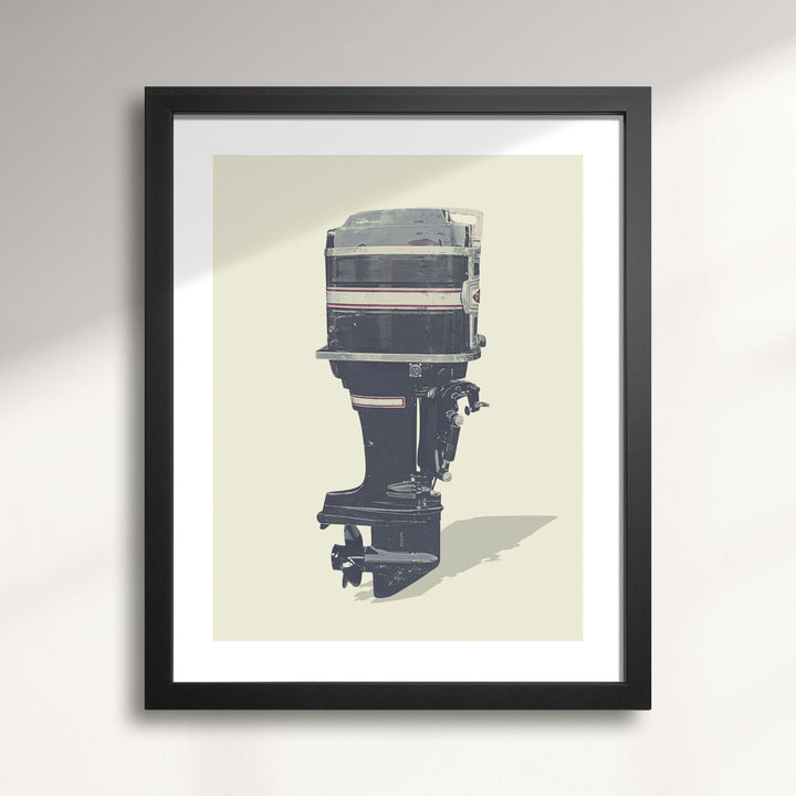 This print is part of a series of stand-alone vintage outboard motor prints from the 1940s through the 1970s. If you prefer, you can also order a version featuring a full collection of motors. Either way, they make a great addition to any cottage, home decor, or the ultimate man cave.