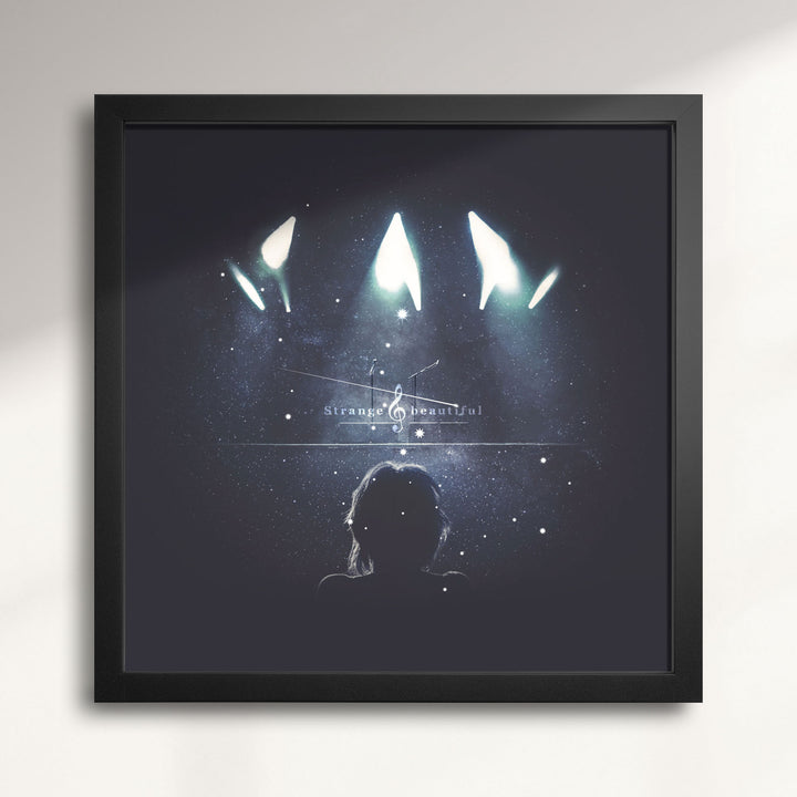 My 'Strange & Beautiful' piece was inspired by the evening and one of my favourite Blue Rodeo songs, Lost Together. If you look closely, it incorporates a little Canadian northern sky astrology, subtly tucking in the constellations of Ursa Major (Big Dipper) and Minor (Little Dipper). The young woman's gaze takes in the stage and Polaris (the North Star) at the tip of the Little Dipper's handle. A shooting star cuts through the middle, dotting the 'i' for emphasis.