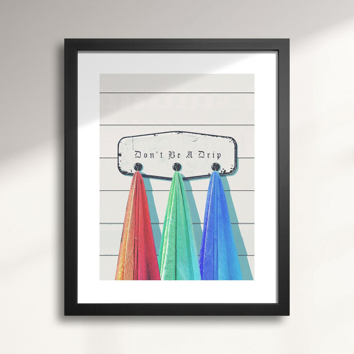 Wet towels on the floor? Not at the cottage, buddy. Don't Be A Drip features a vintage tin sign turned towel rack, proudly displaying three bright towels—and delivering a not-so-subtle reminder to hang up your wet stuff after a day on the water. It’s the classic cottage rule we all heard from mom, probably yelled through the screen door while you tried to sneak past in your dripping swimsuit.