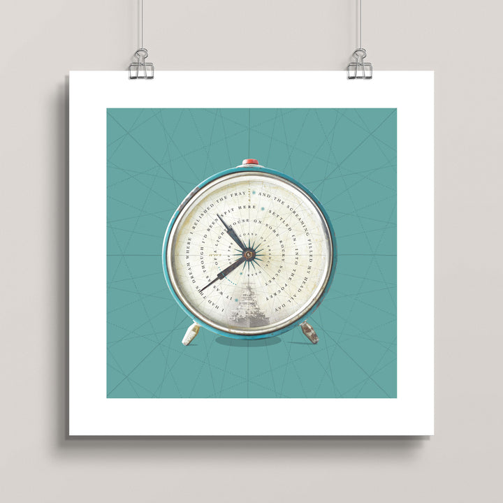 Our 'Nautical Disaster' art print offers Tragically Hip fans a visual interpretation of a classic from their 1994 Day for Night album, recently voted to CBC Radio's top 10 list of fan-favourite Hip songs. There is no absolute consensus on the meaning behind the lyrics but in a Can-Rock interview, Gord Downie said the song was inspired by the sinking of the German battleship Bismarck on May 27, 1941, at 10:39 AM in the frigid waters off France— a wreck that claimed over 2000 lives.
