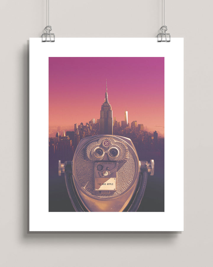This piece mixes a image captured from the Top of the Rock—a photo of Midtown and Lower Manhattan— with an a image I once took of a vintage coin-operated telescope. The balance felt right. Together, they create nostalgic on the city's timeless charm and its unstoppable energy.