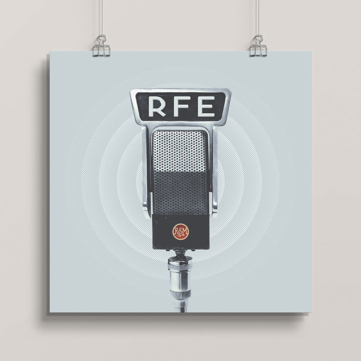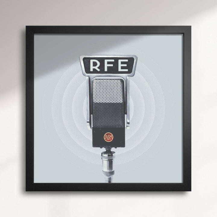 This R.E.M. "Radio Free Europe" Art Print features a photo-realistic vintage microphone with a custom R.E.M. emblem, blending clever details with a creative interpretation of the song’s impact. The retro design elements nod to the early days of independent radio and the band’s signature sound.