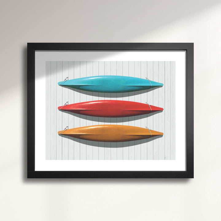 - Photorealistic Fine Art: Richly detailed artwork that captures the texture and atmosphere of classic wooden canoes resting in an old boathouse.